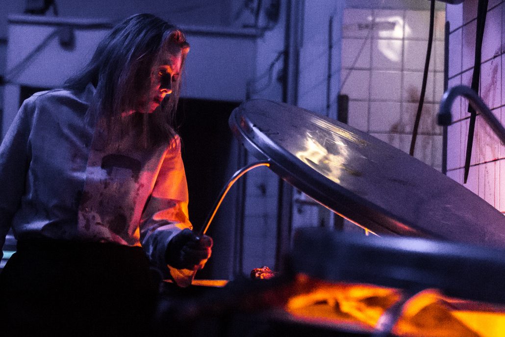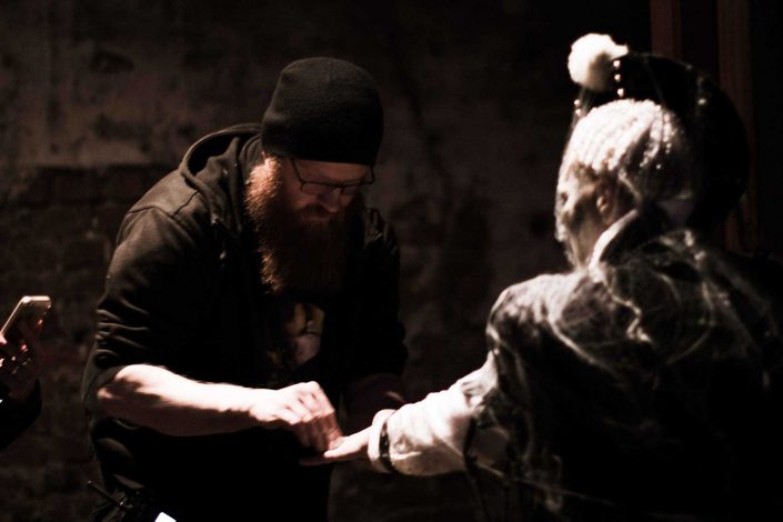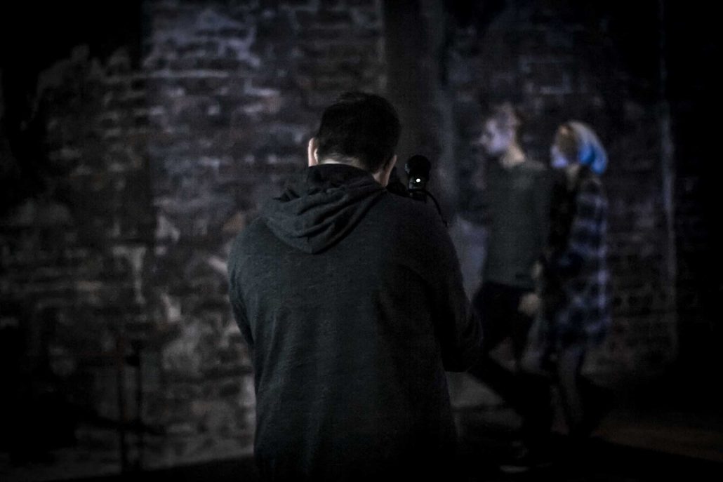 Helping out as light assistance and equipment-gut + on-location photograph, documenting the scene.